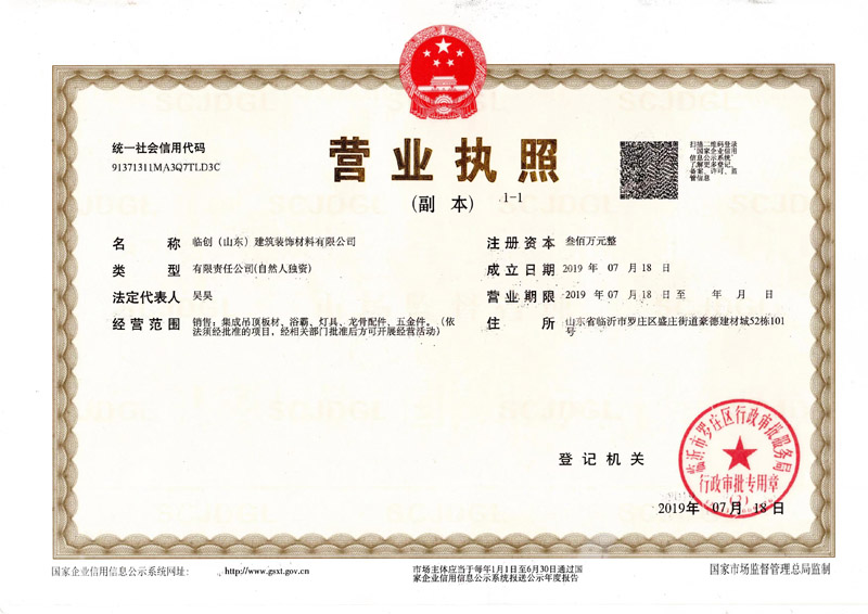 臨創(chuàng)(臨沂)建筑裝飾材料有限公司是一家集成吊頂批發(fā)廠家,集板材、浴霸、燈具、龍骨配件、五金件等集成吊頂材料于一體!主要經(jīng)營(yíng):UV印刷、冰花、覆膜、磨砂、滾涂、抗油污、珠光雙色、鏡面、鐳射、凹凸,生產(chǎn)滾涂拉絲、珠 光,等規(guī)格的集成吊頂鋁扣板半成品片料。應(yīng)用于廚房空間、衛(wèi)浴空間、餐廳空間、客廳空間、臥室空間、書(shū)房空間、過(guò)道空間、陽(yáng)臺(tái)空間及工作辦公空間;規(guī)格齊全、花色多樣!