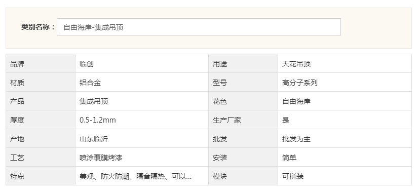 自由海岸是集成吊頂的一種花色名稱,作為臨創集成吊頂的一款300*300mm鋁合金采用高分子烤漆工藝而成平板鋁扣板,安裝簡單,易清洗,防潮隔熱,外形美觀的一款產品,該花色商家推薦家裝用于廚房、衛生間、走廊、陽臺、客廳等吊頂使用!
